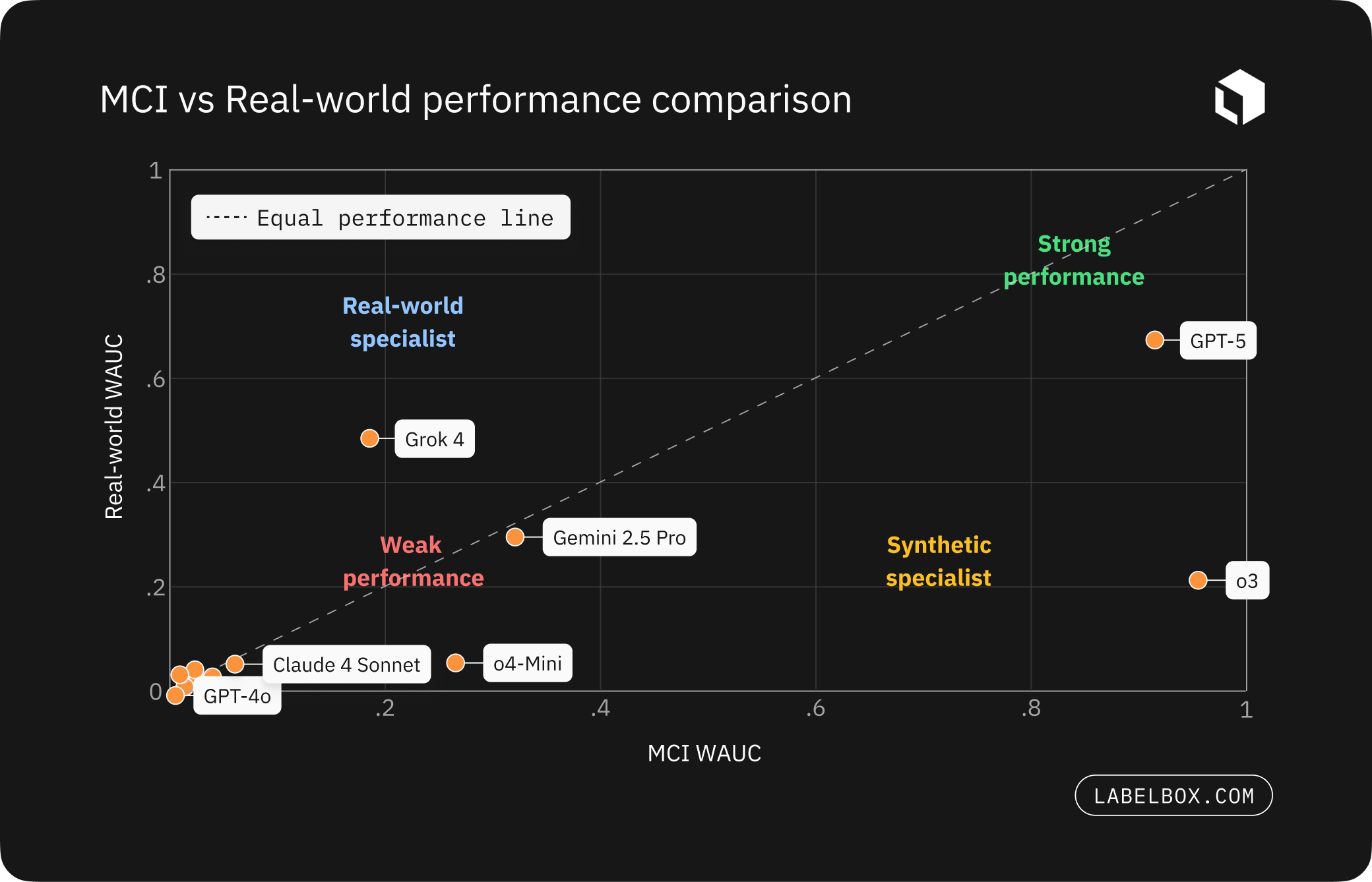 - Real-world migration: GPT-5 leads (WAUC 0.661), followed by Grok 4 (0.483); o3 drops to 0.214 – clear evidence of a domain gap LLMs must close