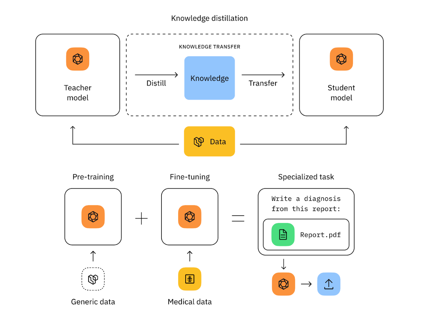 - Model distillation: By leveraging our high-quality labels, teams can effectively distill knowledge from the large 405B model into smaller, more deployable versions. This process, similar to projects like MiniLLM and Baby Llama, involves using the Llama 3.1 405B model as a teacher to generate synthetic data that fine-tunes smaller Llama models like the 70B or 8B, making deployment more feasible while maintaining high performance.