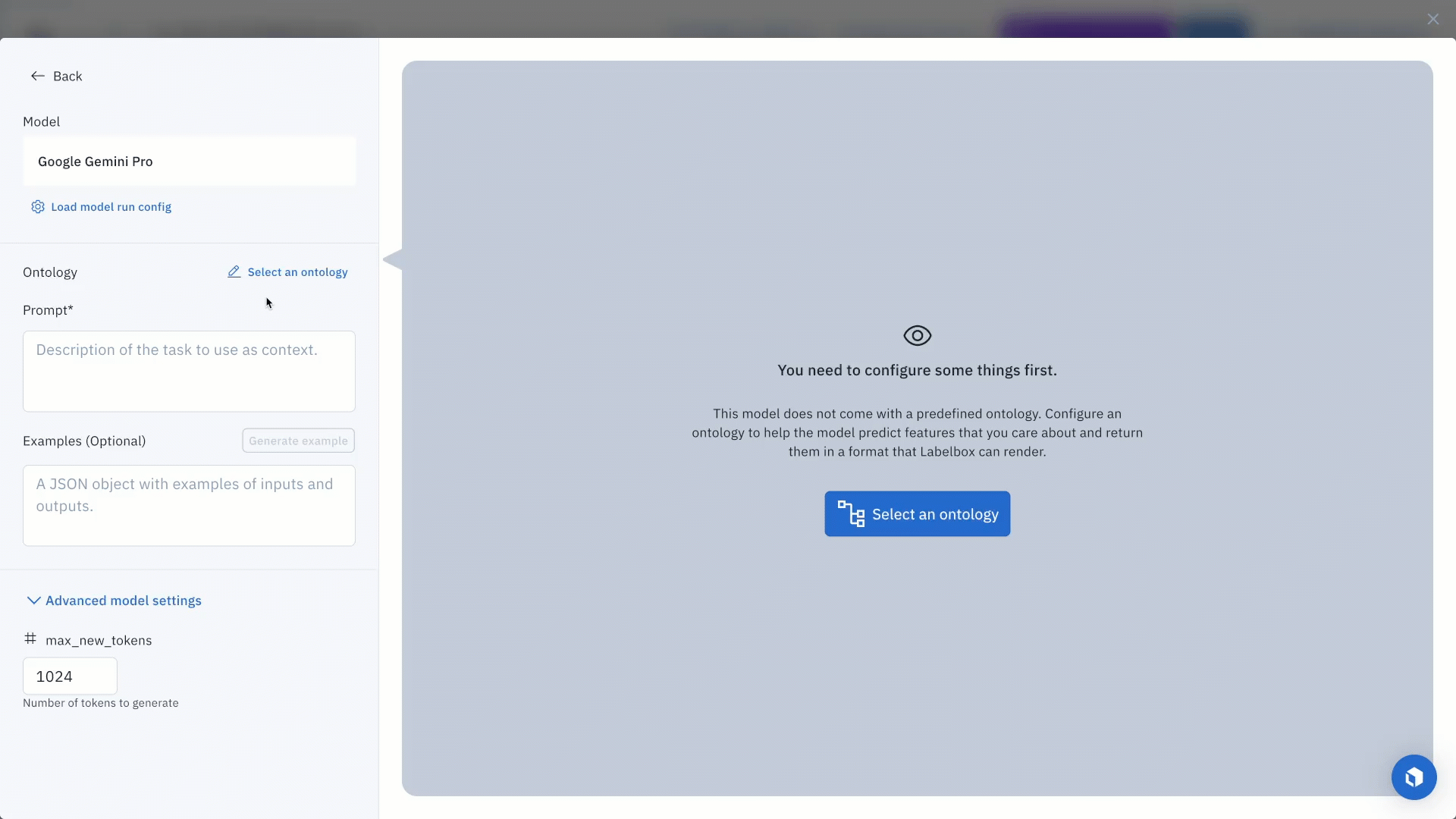 Once you’ve located a specific model of interest, you can click on the model and set the model and ontology settings or prompt. For this example, we will enter the following prompt: