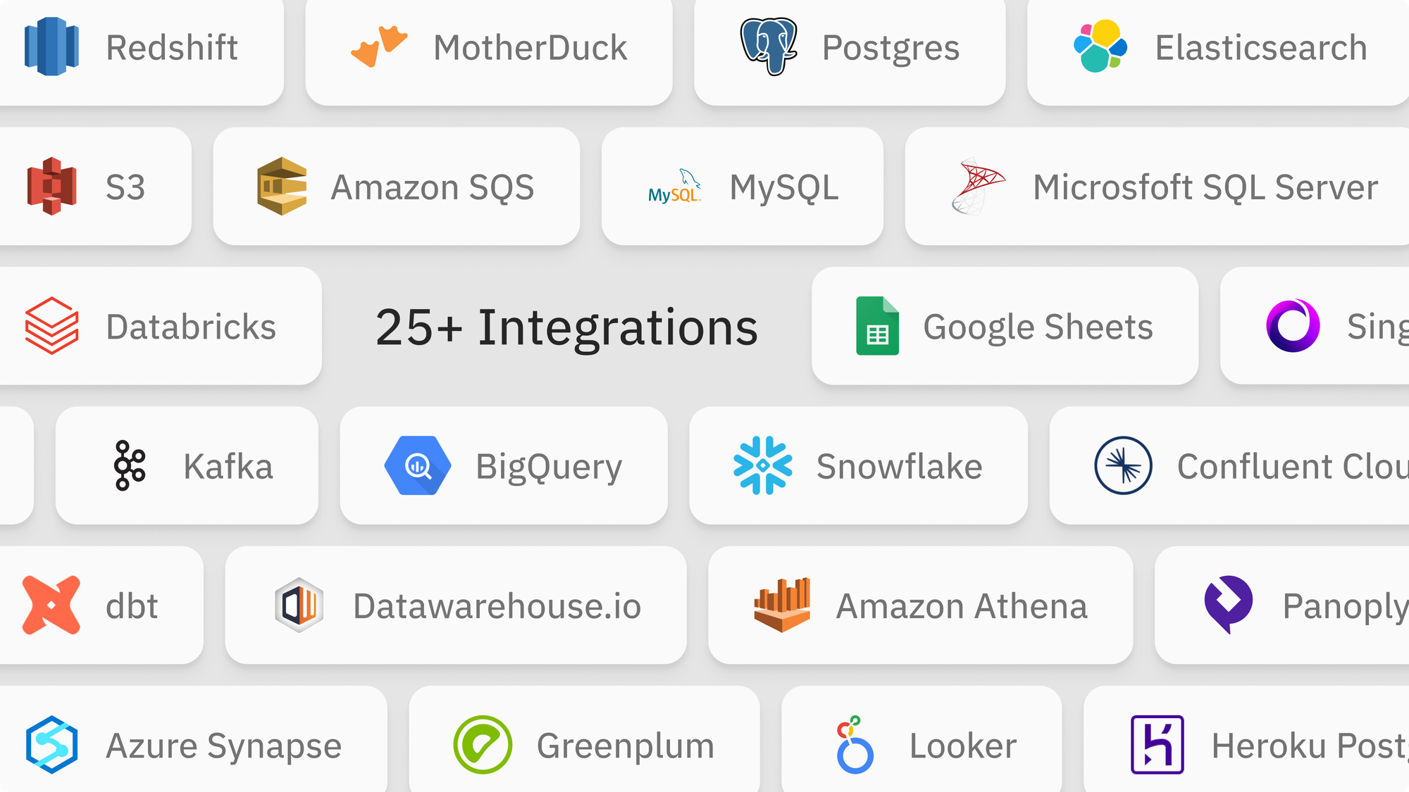In addition to our existing integrations to sync data from cloud buckets like Google Cloud Storage, Amazon S3 and Microsoft Azure Blob Storage, our new data warehouse integration tool leverages Census to offer integrations with virtually any cloud database including Postgres, MySQL, SQL Server, Firebase, and more.