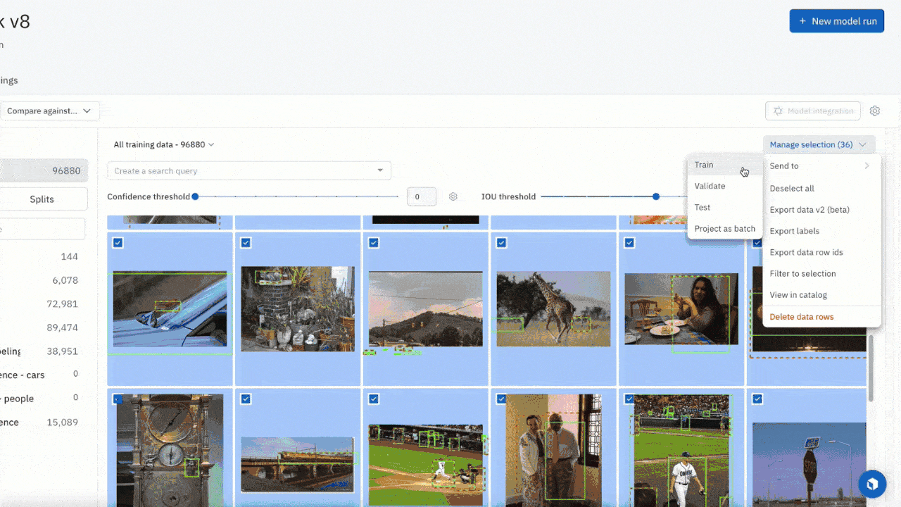 - Select these low confidence prediction data rows and submit them to a project for future labeling