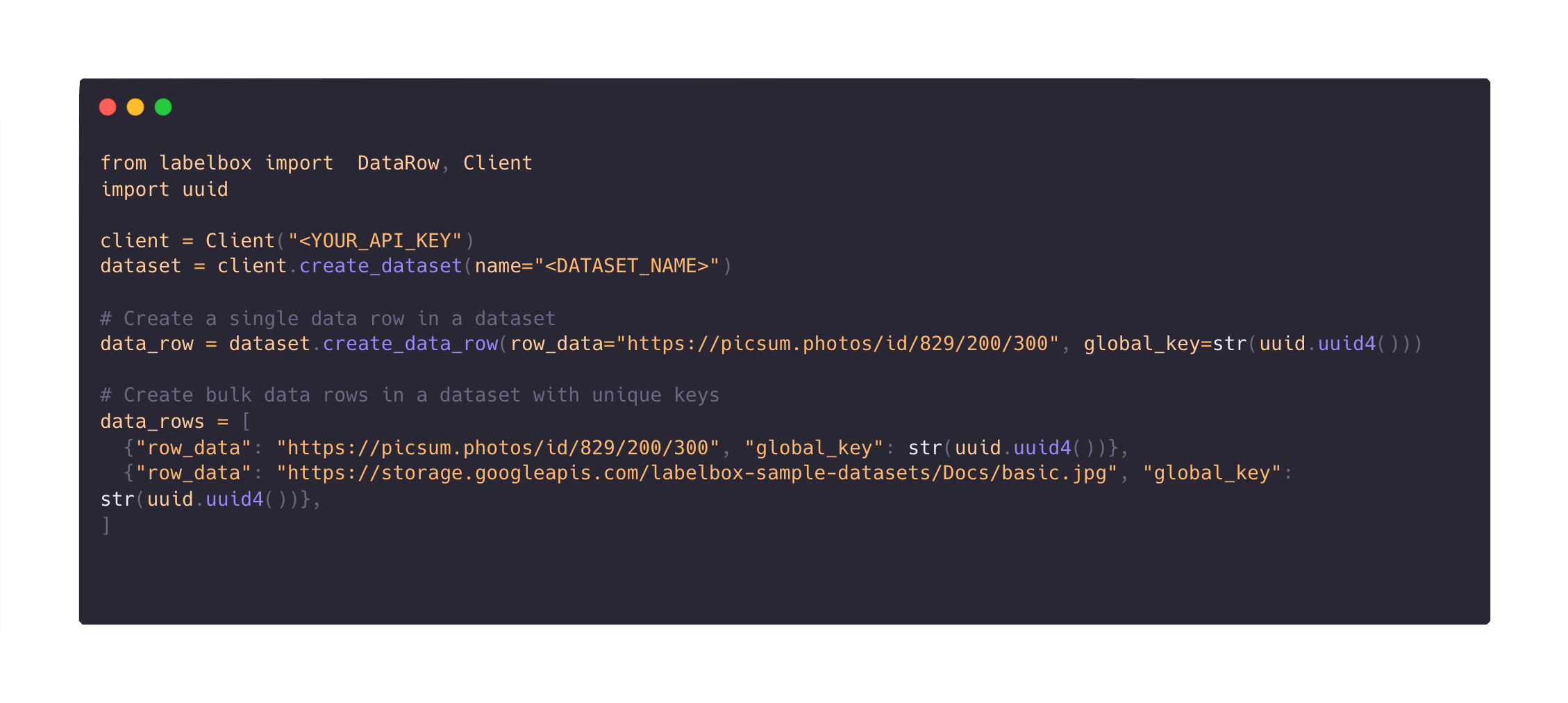Global keys are helpful in avoiding duplicate data in Catalog, as each global key is unique to one data row at the organization level. Rather than waiting for your data rows to process and manually having to export and match IDs, global keys facilitate a streamlined workflow.