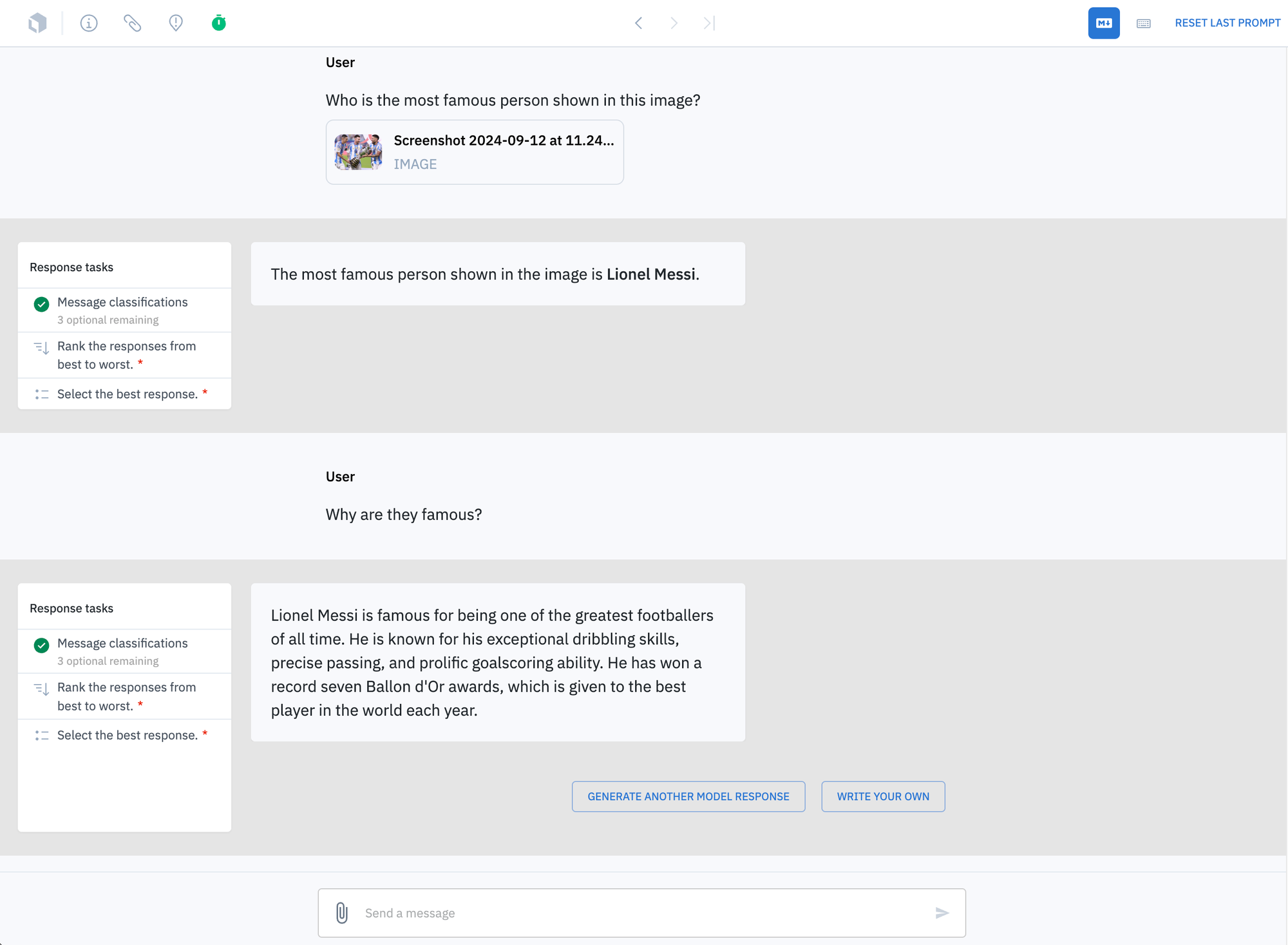 We are excited to announce a brand new look-and-feel to our chat arena style capabilities in the Labelbox platform. Based on feedback from leading AI labs and our growing community of highly-skilled Alignerrs, we reimagined the experience when comparing multimodal models. The enhancements help accelerate labeling workflows, increase the efficiency of our labeling services, and further elevate data quality.