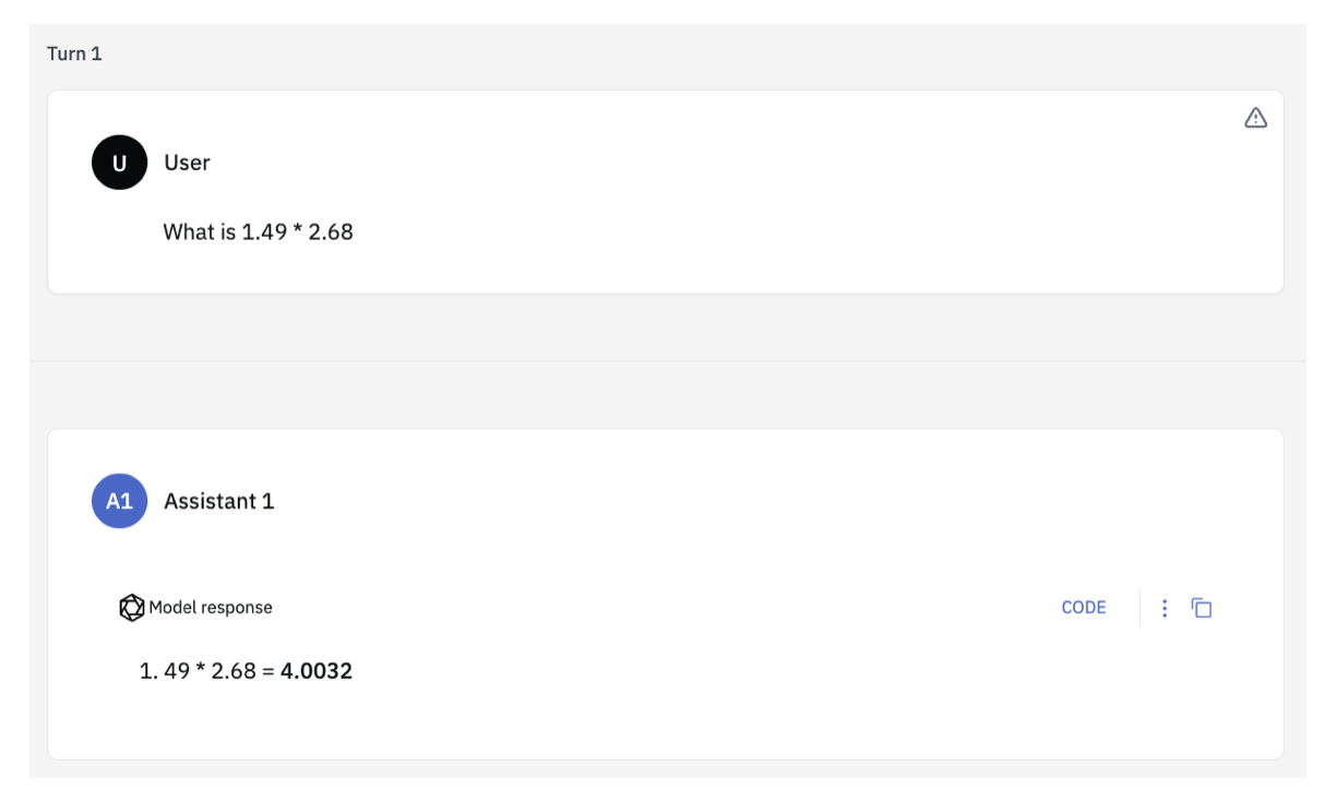 Without tools: The MMC editor queries the LLM directly. Since LLMs are unreliable at arithmetic, the response may be incorrect.