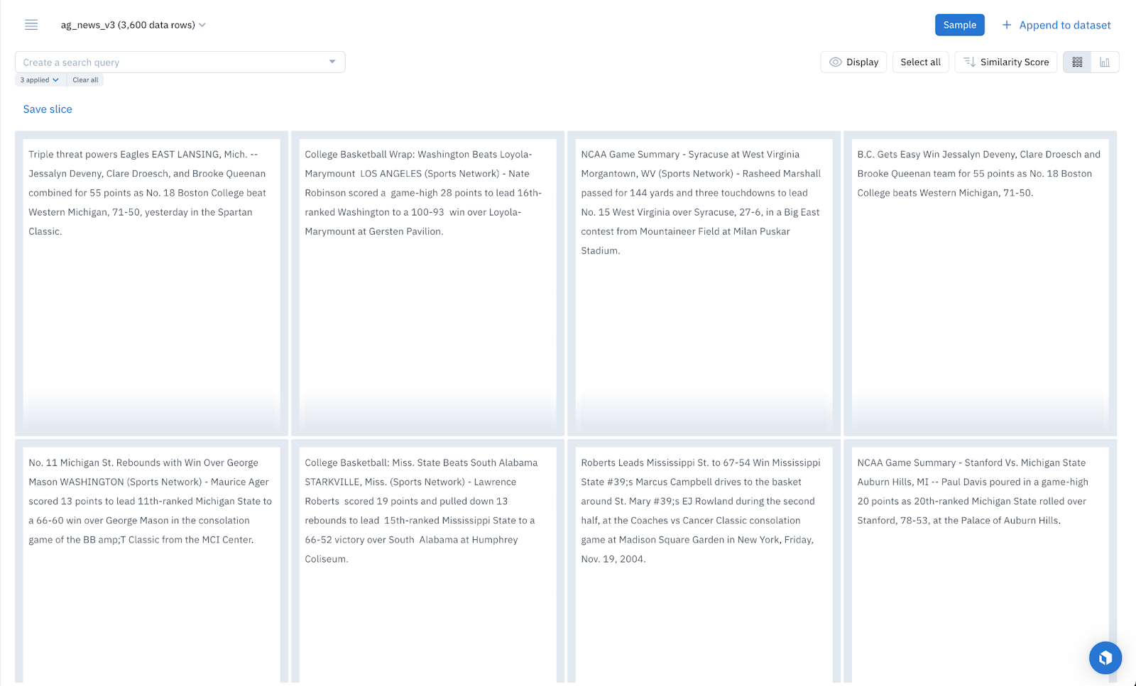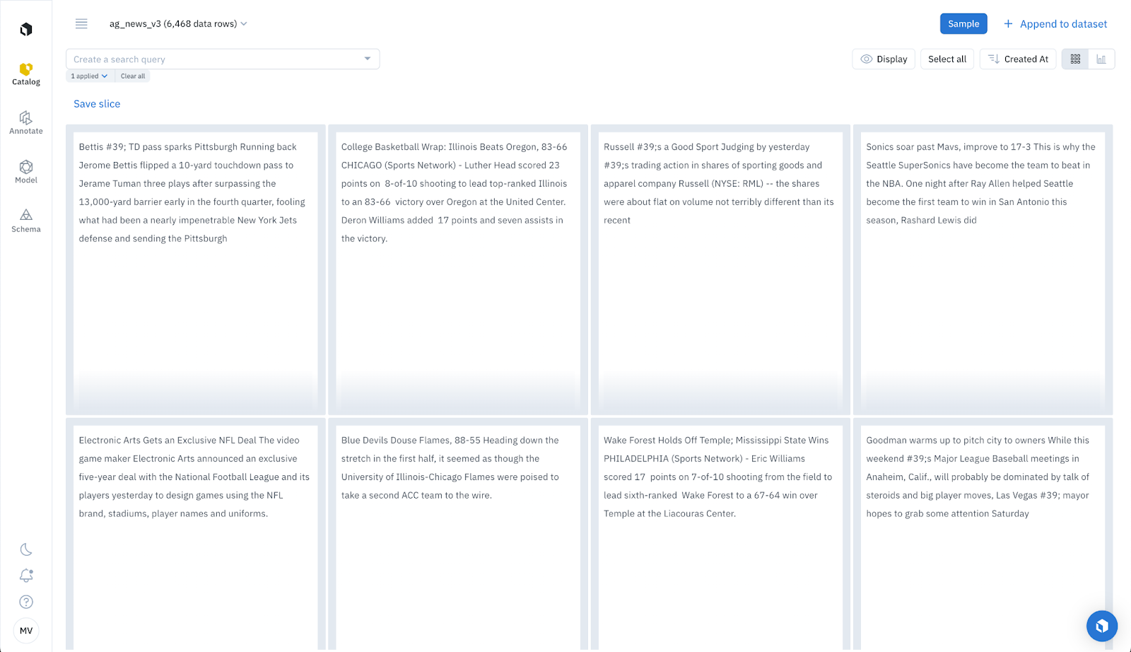 With Labelbox slices, we automatically classify fresh, incoming news articles about sports.