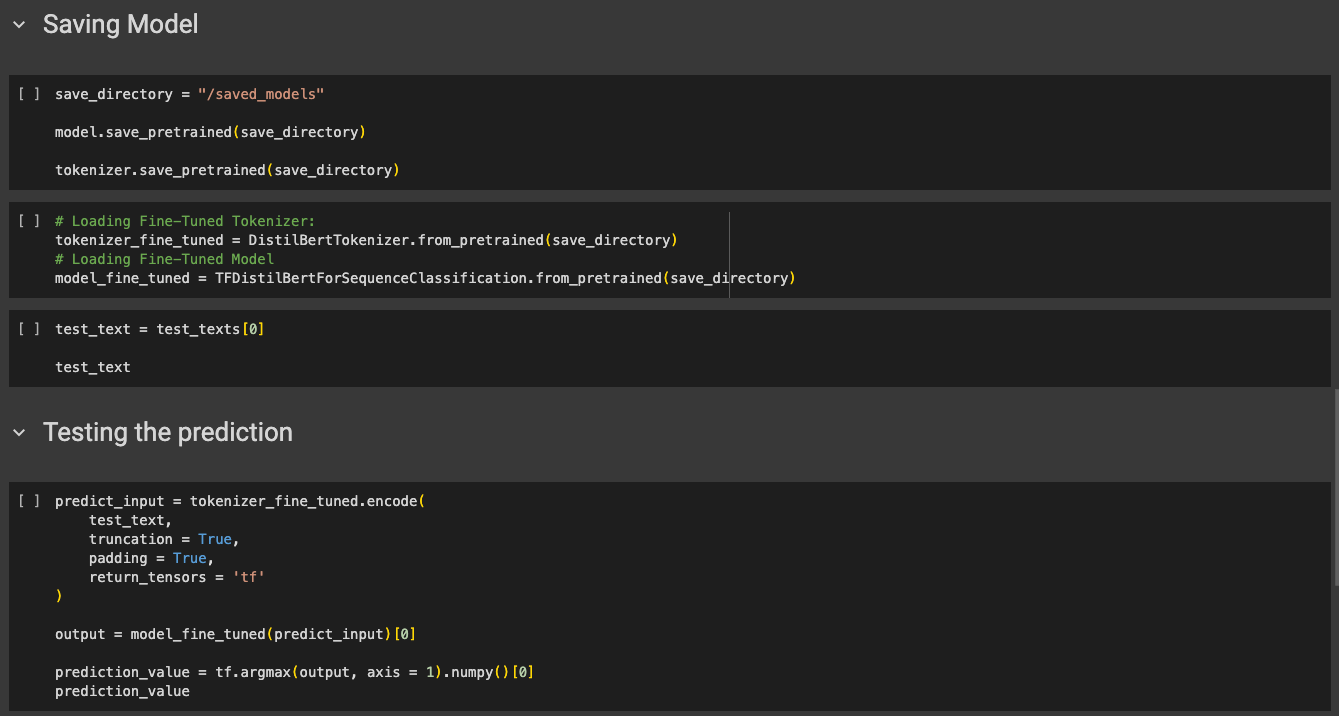 - In Colab we’ll instantiate a BERT model and train it using the data, which includes both text and labels. Specifically we'll fine-tune a text classifier model called “distilbert-base-uncased” to classify text as one of the following categories in the ontology: sadness, joy, love, anger, fear, surprise.
