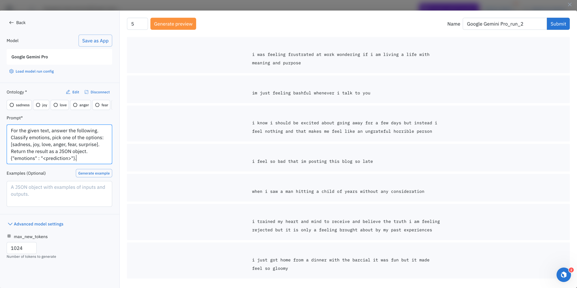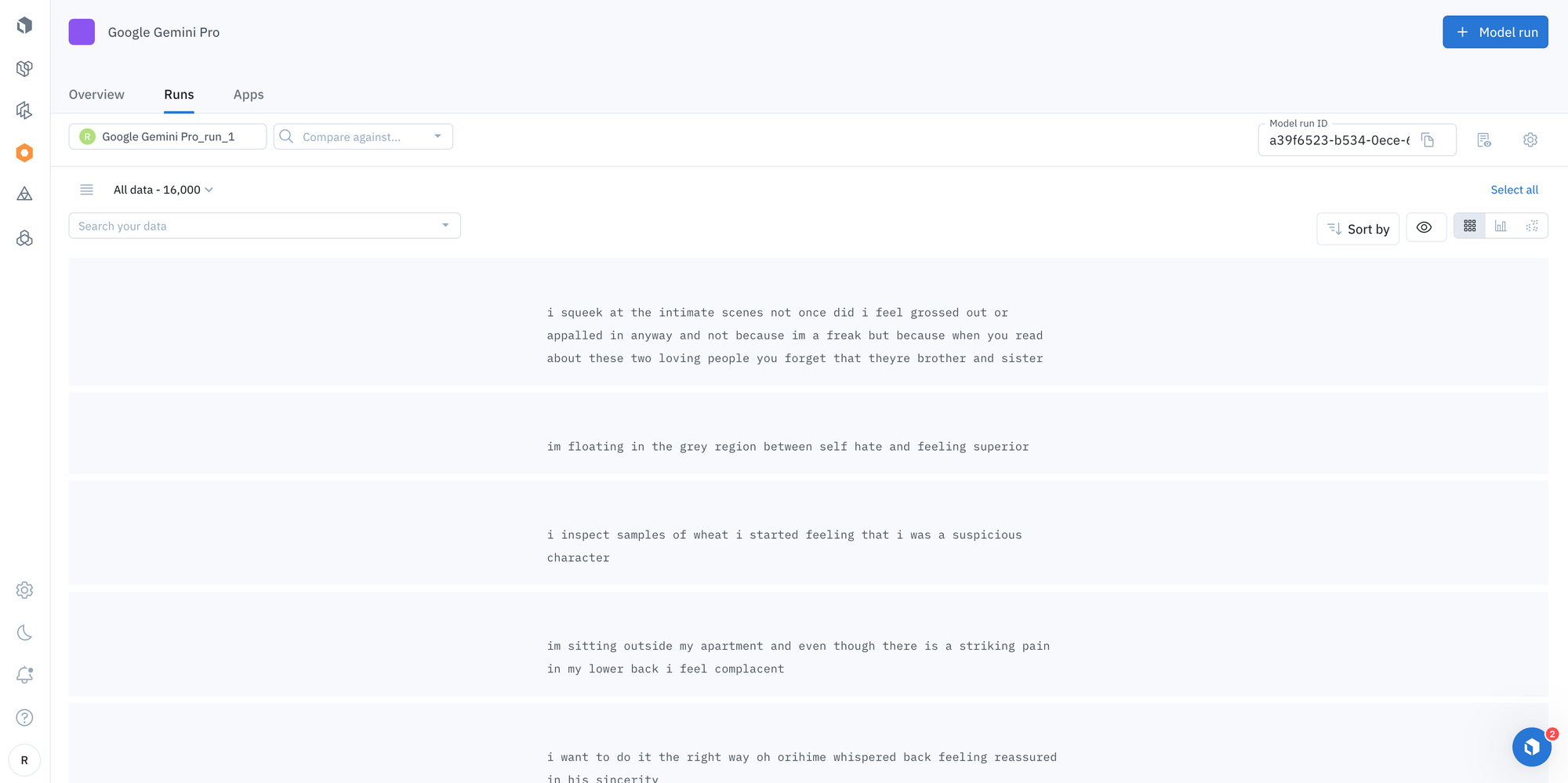 - You will then be prompted to choose a model that you wish to use in the model run (in this case Gemini).