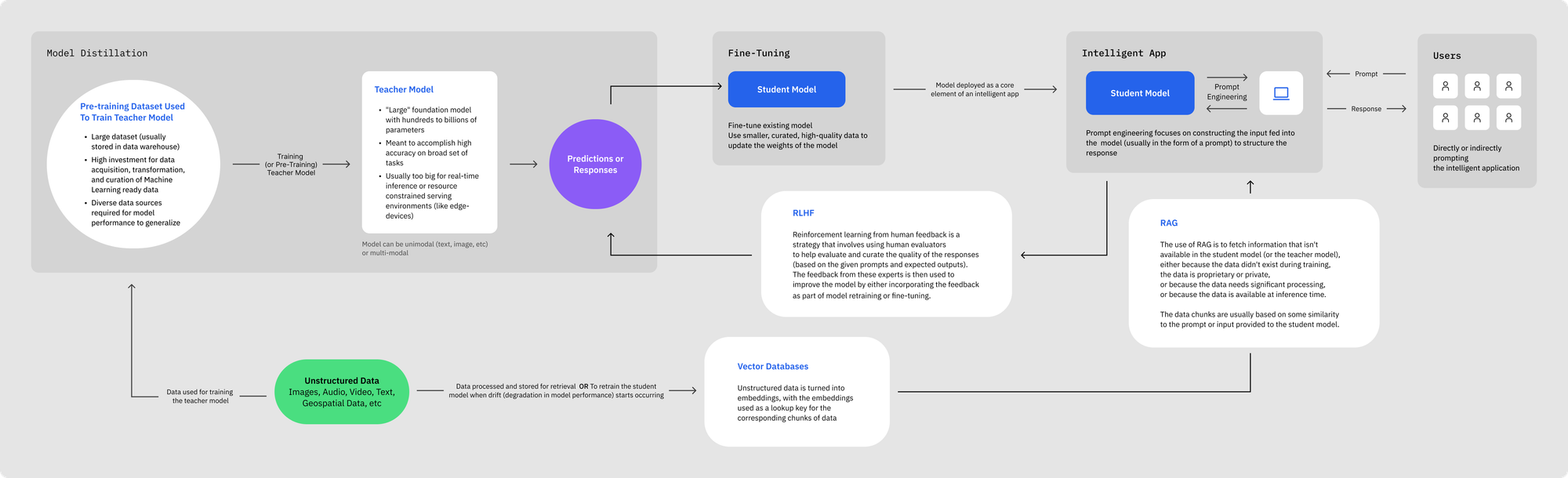 Knowledge distillation, also known as model distillation, is one of many techniques that have grown in popularity and importance in enabling small teams to leverage foundation models in developing small (but mighty) custom models, used in intelligent applications.