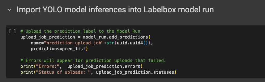 - Use the prediction results to pre-label your data for a project in Labelbox Annotate