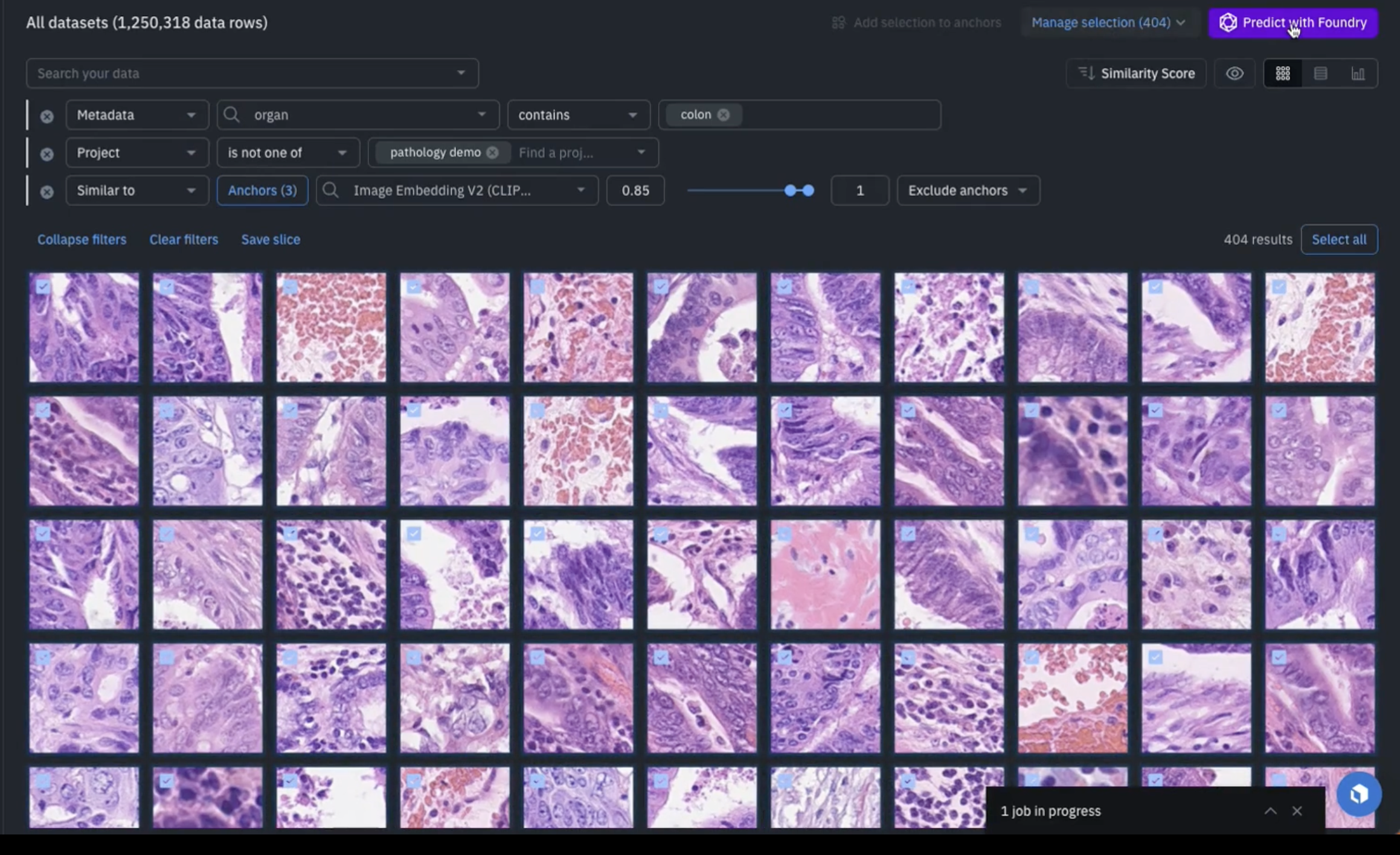 As a next step, you can now begin to narrow down your data that was not already annotated in your project, and begin to layer up various filters and filter by colon tissue. You can also narrow down to a subset of our data that may be useful in order to batch label for annotation.