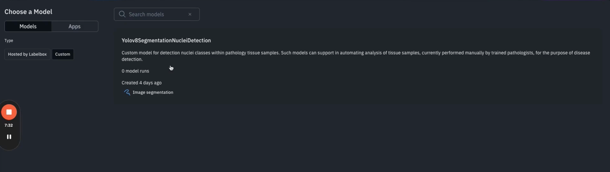Note: In this walkthrough, we've already deployed the custom model to Foundry. If you have any custom models within your organization that you're interested in deploying into your workspace, please reach out to your Labelbox support team.