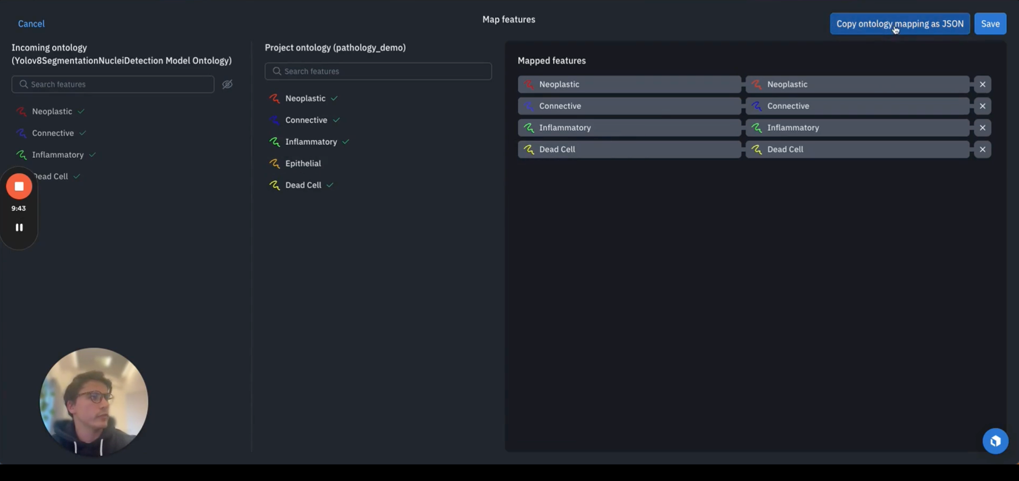 A reminder here to do a bit of mapping to ensure that the ontology is properly mapped. To confirm, you'll get a green confirmation and see your model predictions match up with the ontology that's assigned to your project.