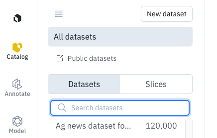 2) If you have a dataset from your local file, you can upload it through the Labelbox UI by clicking ‘new dataset’ in Catalog.