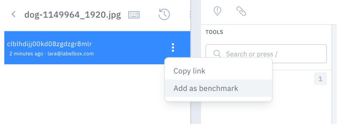 Benchmark is a Labelbox QA tool that enables you to designate a labeled asset as a "gold standard" and automatically compares all labels on that asset to the benchmark label.
