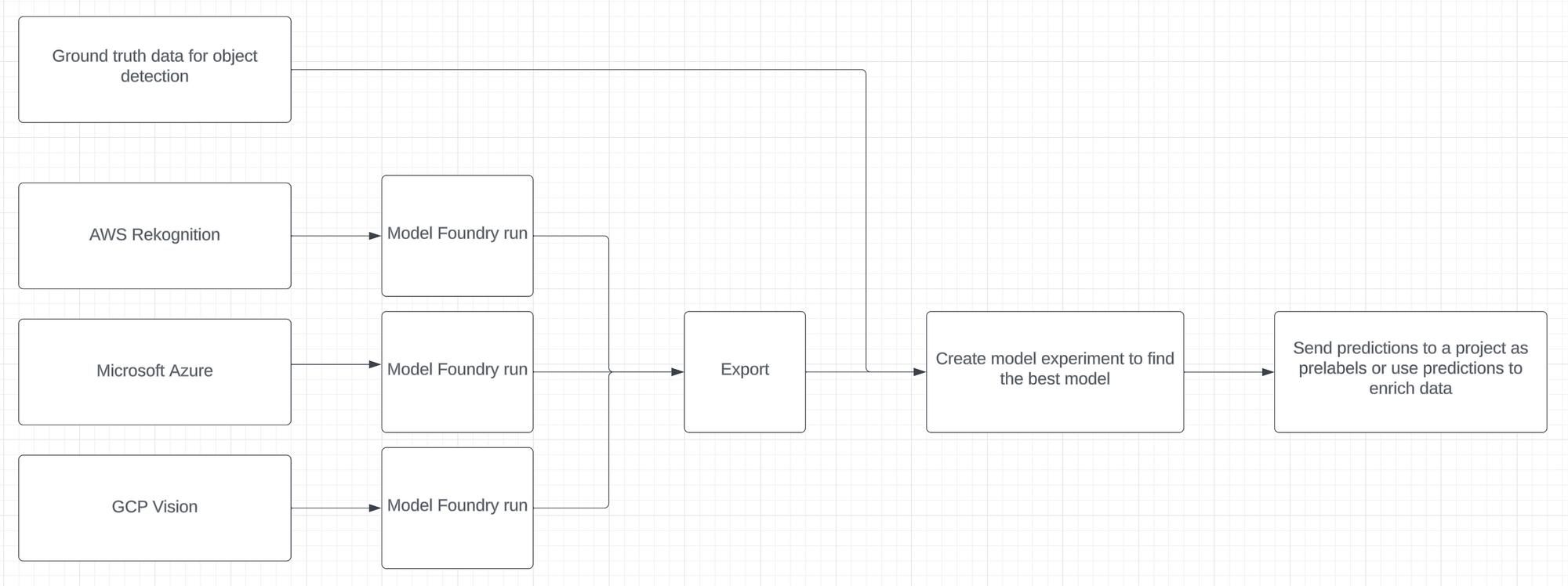 Labelbox Model Foundry streamlines the process of comparing model predictions, ensuring teams are leveraging the most optimal model for data enrichment and automation tasks. With the right model, teams can easily create pre-labels in Labelbox Annotate – rather than starting from scratch, teams can boost labeling productivity by correcting the existing pre-labels.