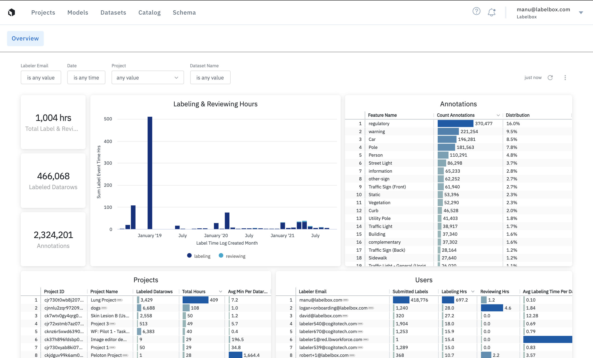 - A global view of your entire labeling operations across all Labelbox projects.