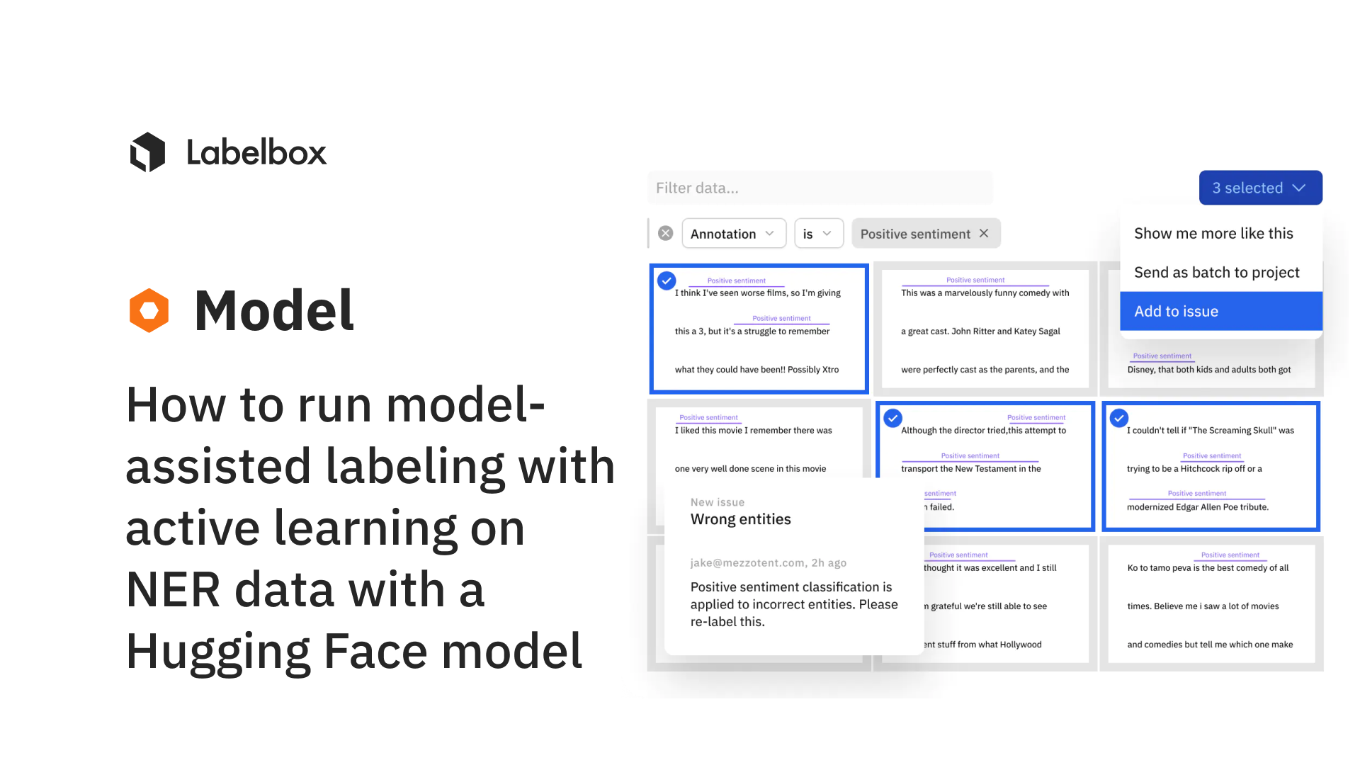 In this guide, we'll be showing you how you can efficiently improve models in development and production by using a third-party model, such as 🤗Hugging Face, to guide and identify targeted improvements in your training data to boost model performance.