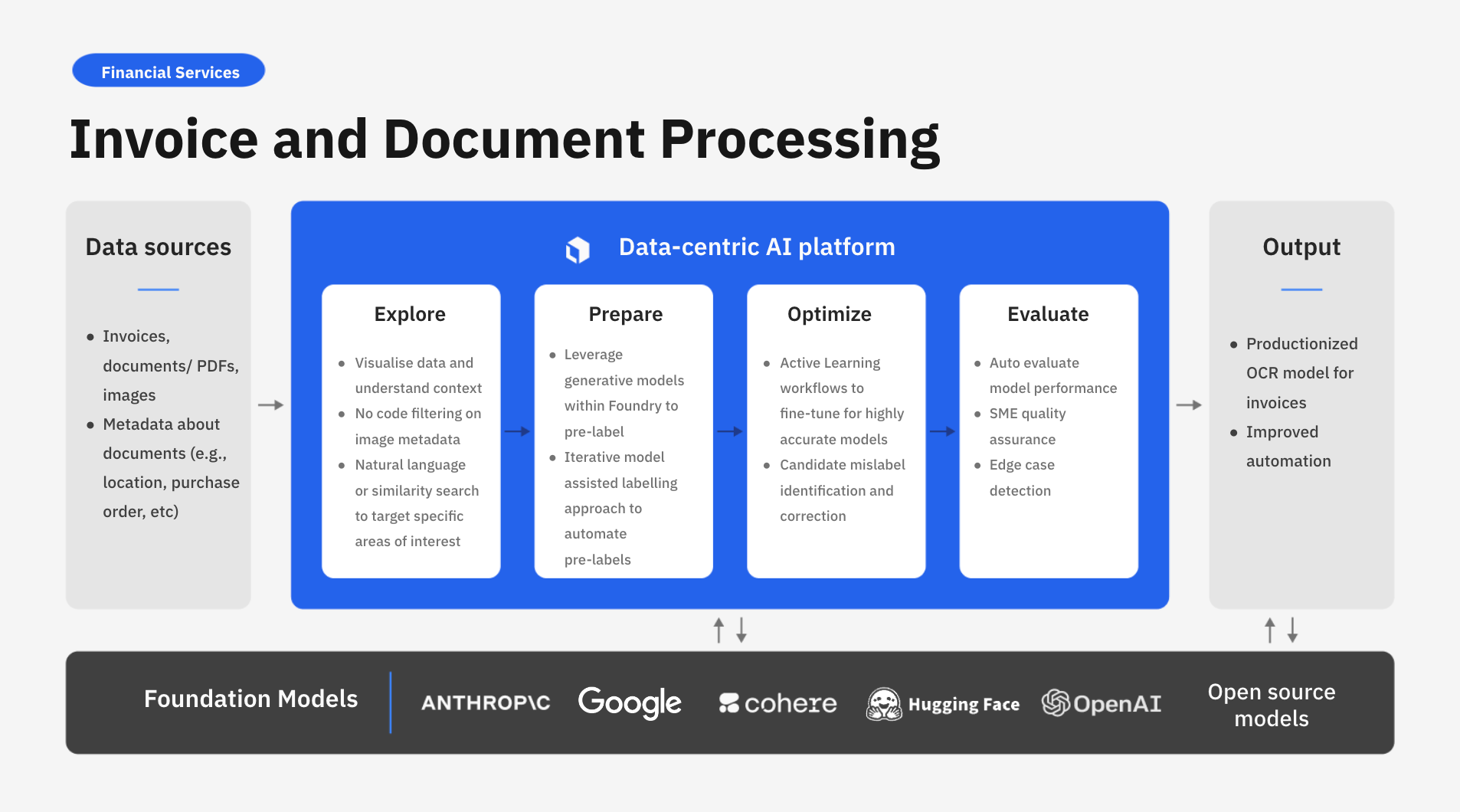 With AI-powered invoice and document processing, you can now seamlessly integrate the latest advances in foundation models into your core financial and administrative operations. As the demand for better monitoring, reporting and compliance continues to rise, it's essential for teams to ensure accurate, timely, and organized handling of financial transactions. Labelbox empowers the world’s largest financial services organizations to leverage AI solutions tailored to their unique invoice and document processing challenges.