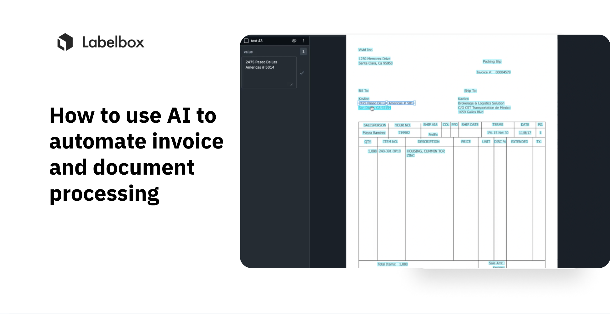 In this guide, we’ll walk through how your team can leverage Labelbox’s platform to build an AI model to improve invoice and document processing from images. Specifically, this guide will walk through how you can explore and better understand unstructured data to make more data-driven business decisions.