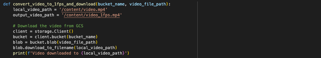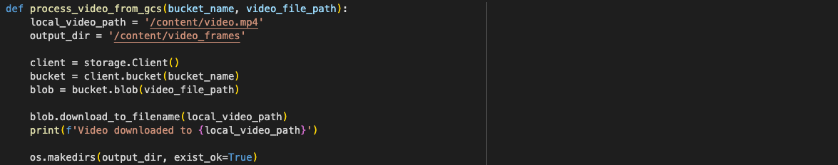 - The function ‘process_video_from_gcs’ is designed to handle the entire workflow of downloading the video, extracting frames, and uploading them back to GCS.