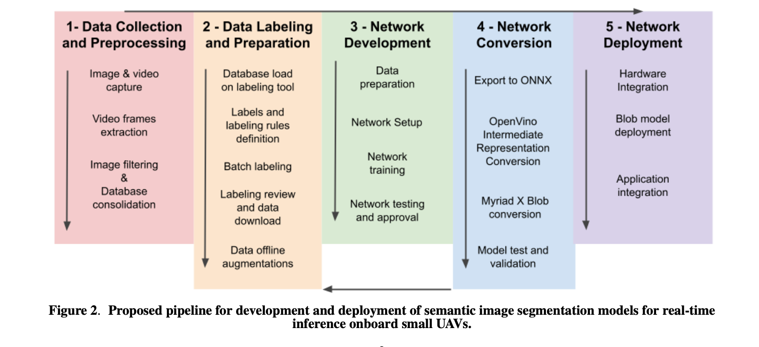 Findings: Results indicate that the models can segment desiccation cracks on airborne collected images at various locations at heights ranging from 5 to 20m. Deployment of the models for real-time inference onboard small UAVs shows potential for application in the field. This research shows the feasibility of a low-volume data training to UAV deployment pipeline while highlighting potential hurdles in the processing pipeline for future efforts. They presented a system and architecture for onboard UAV detectors of sedimentary features, which can speed up the search for life on other planets.